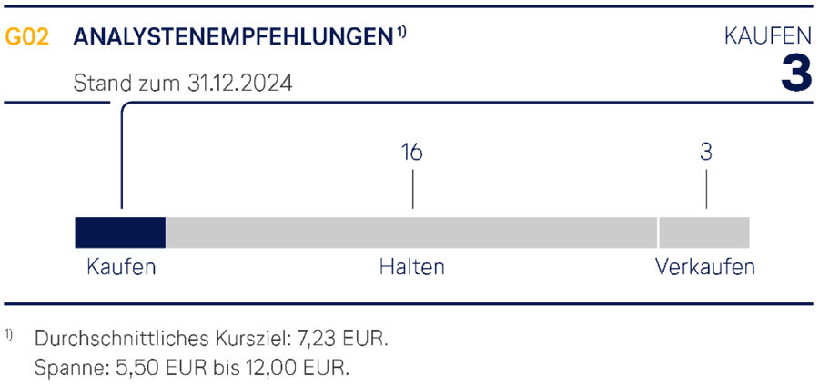 Zum Jahresende 2024 empfahlen von den 22 Aktienanalystinnen und -analysten (Vorjahr: 21), die regelmäßig Einschätzungen zum Unternehmen abgeben, drei Analystinnen und Analysten (Vorjahr: elf), die Aktie zu kaufen, 16 (Vorjahr: sieben), die Aktie zu halten, und drei (Vorjahr: drei), die Aktie zu verkaufen. Während die Analystinnen und Analysten die fortwährende Erholung im Passagiergeschäft, die anhaltende Stärke von Lufthansa Technik sowie die weitere Stärkung der Bilanz positiv hervorheben, bestehen Sorgen hinsichtlich der Umsetzbarkeit der geplanten Effizienzsteigerung bei Lufthansa Airlines sowie der zukünftigen Nachfragesituation und der Aussichten für das Luftfrachtgeschäft. Auch die makroökonomische und geopolitische Lage wird als Risikofaktor gesehen. Das durchschnittliche Kursziel lag am Jahresende 2024 bei 7,23 EUR, mit einer Spanne von 5,50 EUR bis 12,00 EUR.