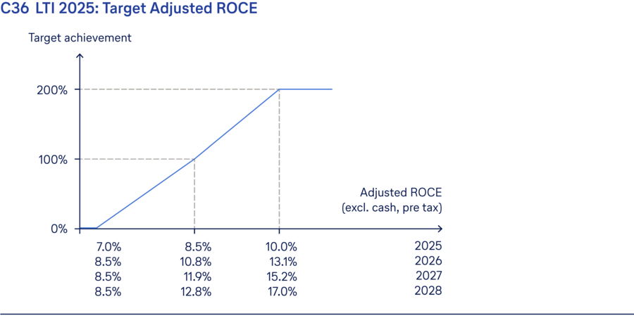 For both the one-year and long-term variable remuneration, the possible range of performance against both individual financial targets as well as sustainability targets is between 0% and 200%.
