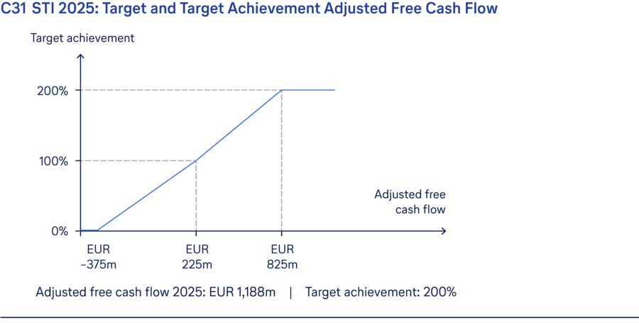 In the interests of value-based management, the financial targets are based on the Group’s key performance indicators; Adjusted EBIT and Adjusted free cash flow each account for 40% of the target achievement. For the 2025 financial year, as in prior years, the Supervisory Board defined “Customers” and “Employees” as focal points for the business and sustainability targets in the one-year variable remuneration, and thus took the interests of other key stakeholders into consideration.