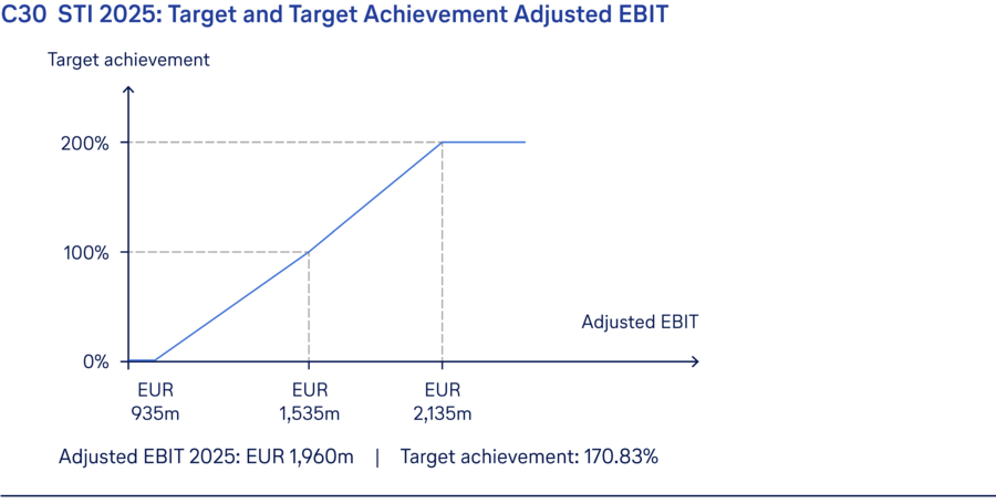 The following table shows the overall level of target achievement and the resulting amount paid for the STI 2025 for each individual member of the Executive Board.